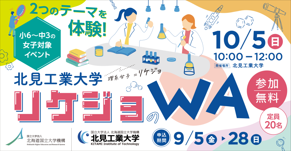 10月5日(日)、北見工業大学において、小学6年生~中学3年生までの女子児童・生徒を対象とした「リケジョのWA」を開催し、8名の方にご参加いただきました。