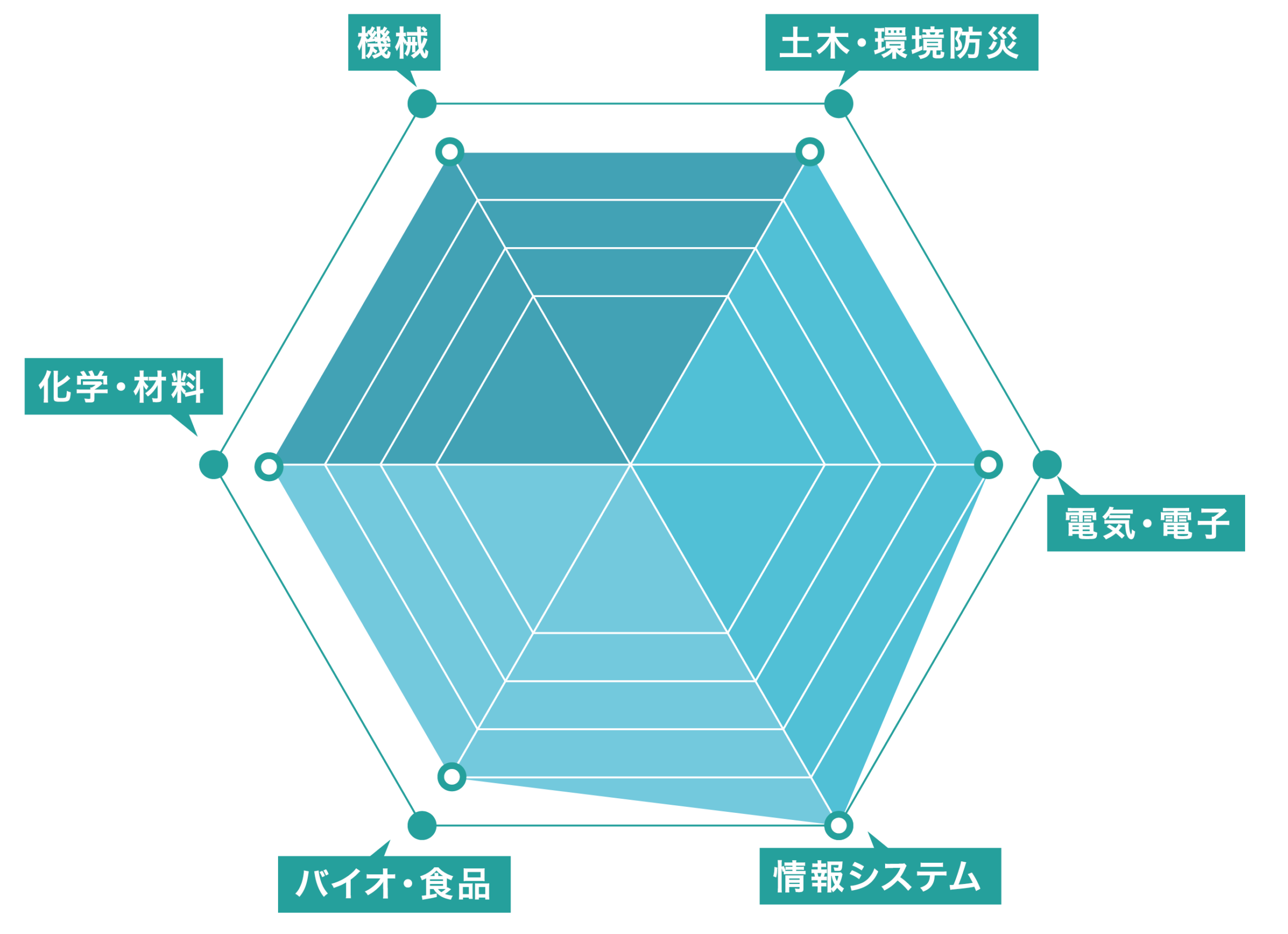 データの収集や解析・活用を通じて、情報通信システムのみならず、電気・電子、機械、土木・環境防災、バイオ・食品、化学・材料といった基盤分野の課題解決に貢献でき、データ駆動型問題解決手法と関連する基礎スキルを総合的に学びます。