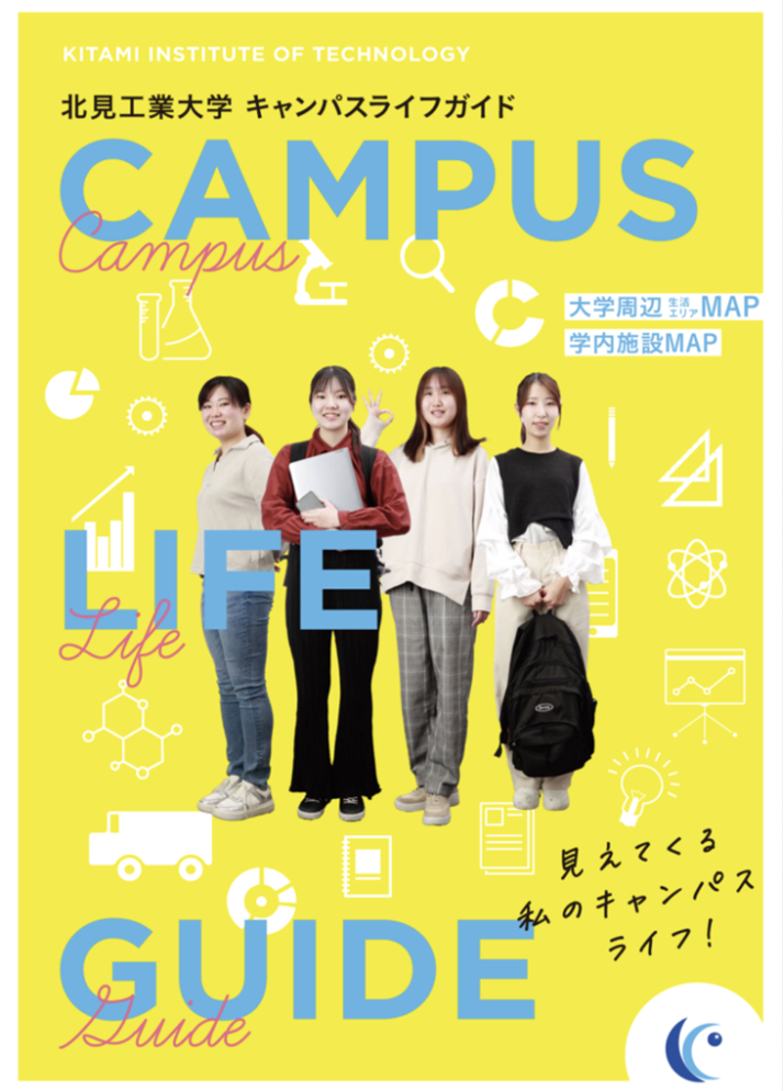 キャンパスライフガイドは、北見工大生が学生生活をすごす広々としたキャンパスの紹介や、大学周辺を中心とした北見市内のマップを掲載したパンフレットです。